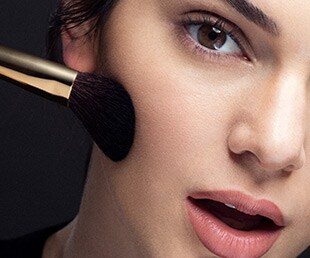 Γυρίστε το πινέλο και περάστε την άλλη πλευρά του επάνω από το ρούζ σας. Εφαρμόστε τα μάγουλα και στα μήλα του προσώπου σχηματίζοντας το σχήμα ''Χ''.
